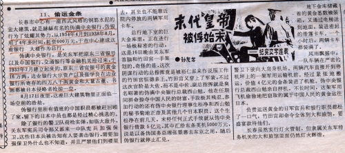 1、因附长春晚报本年6月6日报导日本侵占东北时强夺大量物资和银行黄金若干万两。