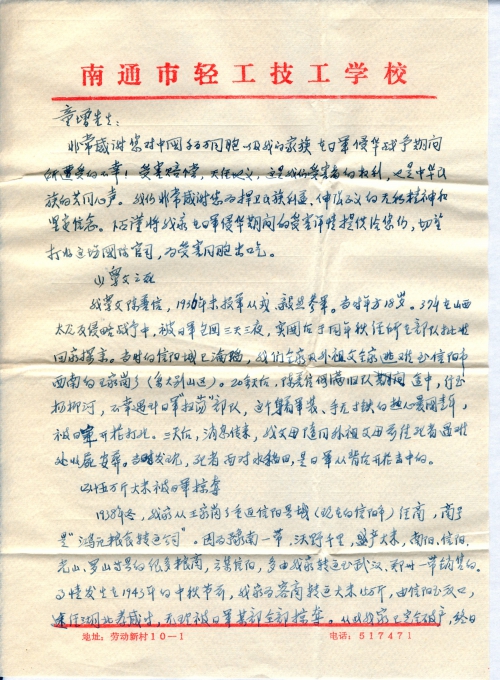 写信地址:江苏省南通市