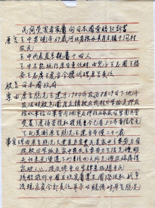 民间受害者家属向日本国索赔起诉书