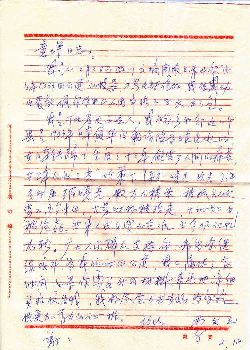 我是河北省迁西县人,我的家乡和邻近几个县是1933年日本侵华后就沦陷为殖民地的,在日本铁蹄下生活了十三年,饱受了人间的痛苦,在日本人的“三光”政策下(杀光、烧光、抢光)许多村庄被烧光,数万人被杀,被抓去做劳工,至今未回,大量财产被抢走,大批妇女被强奸,晋东人民所受的苦难,至今仍记忆犹新。广大人民群众支持你,希望你继续战斗,为我们讨回公道,我已离休了,有时间,如果你需要什么材料,希望把详细要求信告我,我将尽全力去办好,为你提供更加有力的证据。