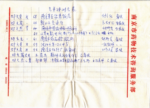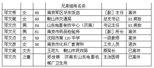 我的家是受日本鬼子三光政策的迫害典型家庭,1938年春之前,我家有九口人,两个姐姐,一个哥哥,两个妹妹,父母,奶奶,三八年春上日本人来了,杀死了我父亲,奸污了我60多岁的老祖母,[烧]掉20多间房子。我父亲叫邓树圻,专做文书、本子生意,一套手工作坊化为灰烬,准备盖三间楼房的木料化为灰烬,家具、衣服……全部烧光。鬼子过后,1940年,伪军修据点盖炮楼,又拆我家砖用,奶奶拼命不给拆,伪军一名小军官把我奶奶痛打一顿,病倒而死,母亲一辈子守寡,我兄弟姐妹年龄很小,最大的姐姐13岁,小妹妹才周岁。