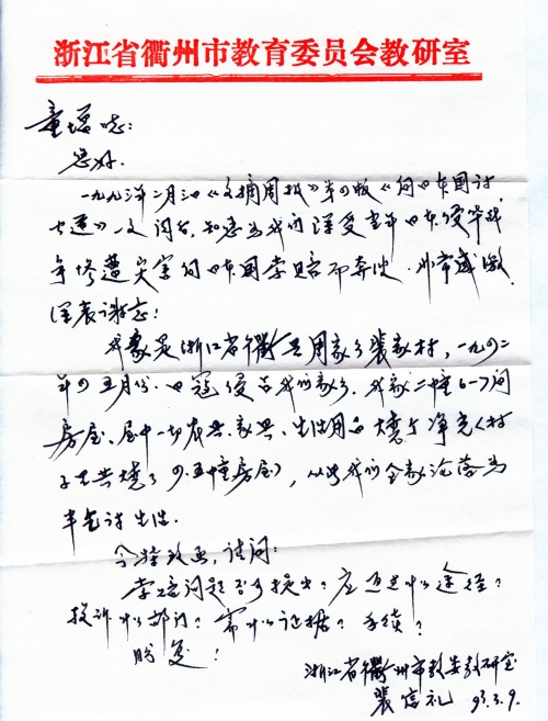 一九九三年二月三日《文摘周报》第四版《向日本国讨公道》一文阅后,知您为我们深受当年日本侵华战争惨遭灾害向日本国索赔而奔波,非常感激,深表谢意!