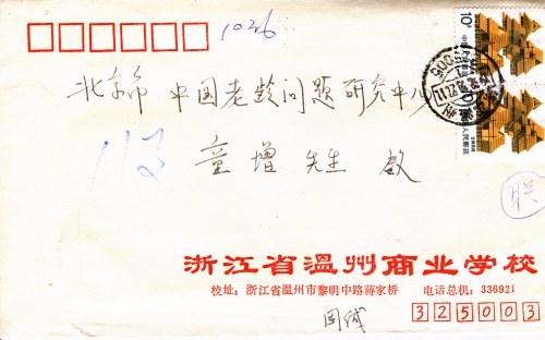 写信地址:浙江省温州市