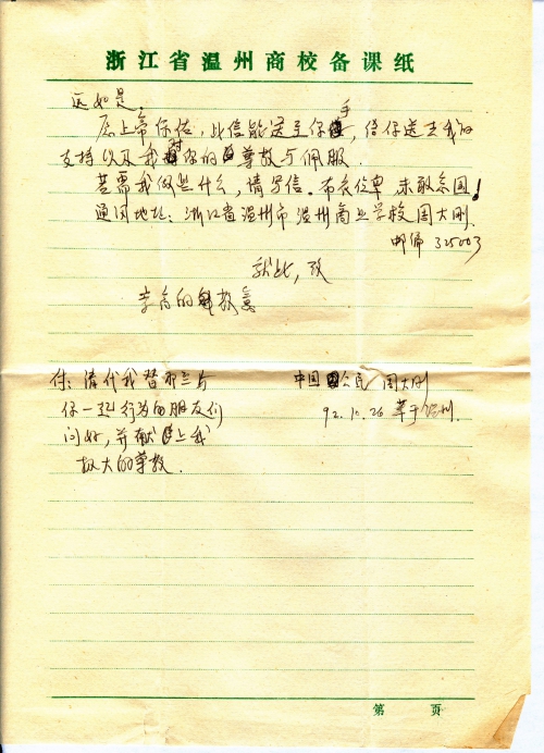 写信日期:1992-10-26