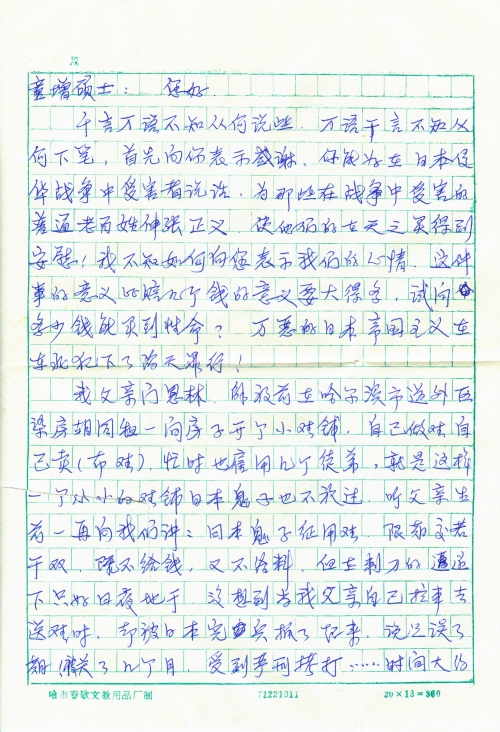 Though there are a lot of things to say, I have no idea where I should begin. First, I would like to express my appreciation for your initiative. Thank you for speaking out for the victims of the Japanese Invasion War in China, and demanding justice for those common people who suffered in the war, which can bring comfort to the spirit of the deceased! I don’t know how to express our feelings to you. The significance of this matter is much more important than some compensation amounts, after all how much money is enough for you to buy a life? The absolute vicious Japanese Imperialism committed monstrous crimes in Northeast China!