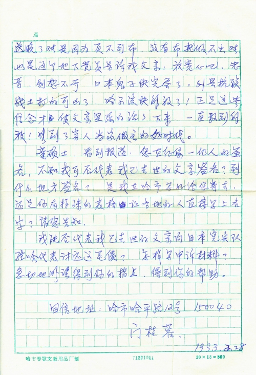 Address for return mail: 12 Haping Road, Harbin 150040