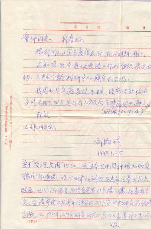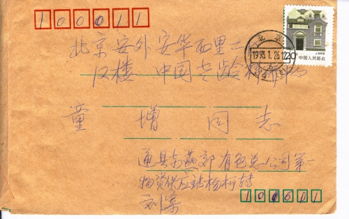 我因由老年病医院出院,联系地址改由安外石油天然气总公司人教局五珠眉同志转交。(邮编100724)