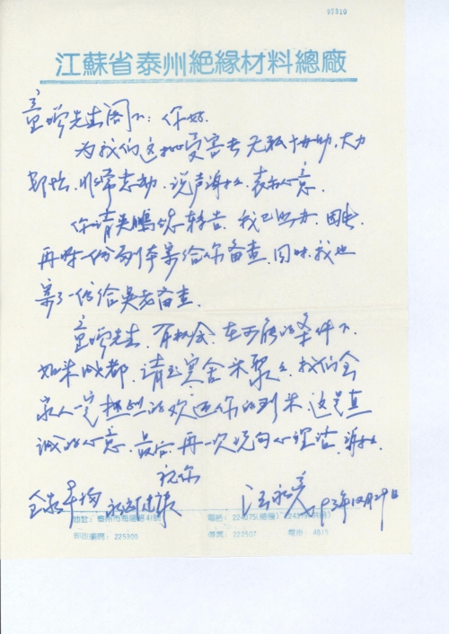 童增先生,有机会,在可能的条件下,如来成都,请至寒舍来聚聚。我们全家人一定热烈的欢迎你的到来。这是真诚的心意。最后再一次说句心[里]话,谢谢。