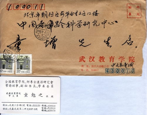 PS: Considering that you are working for the interest of the whole nation, and you have no governmental support, I specially attached a few stamps, so as to facilitate future communication, and it also represents a little support from me.