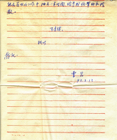 写信日期:1993-02-12