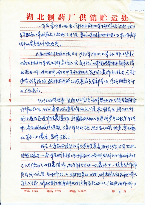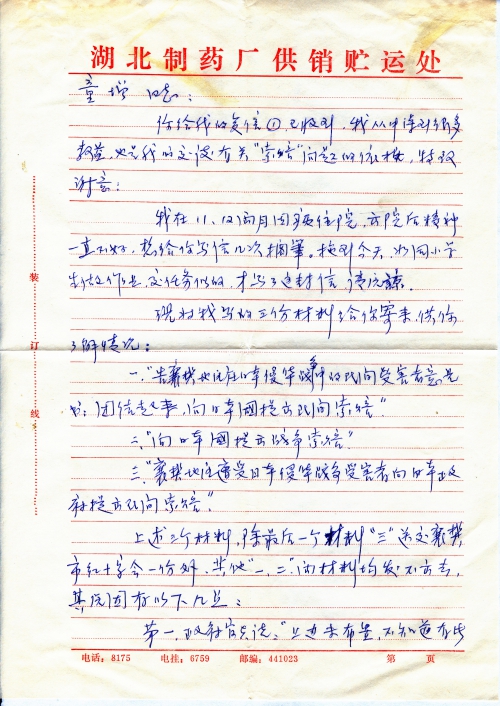 An Opinion Letter for Civilian Victims in Xiangfan District During Japan’s War of Aggression Against China: