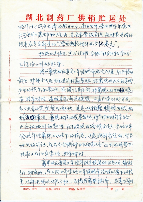 Apart from the last of the above three articles, one copy of which has been submitted to the Red Cross of Xiangfan City, the other two articles are rejected for the following reasons:
