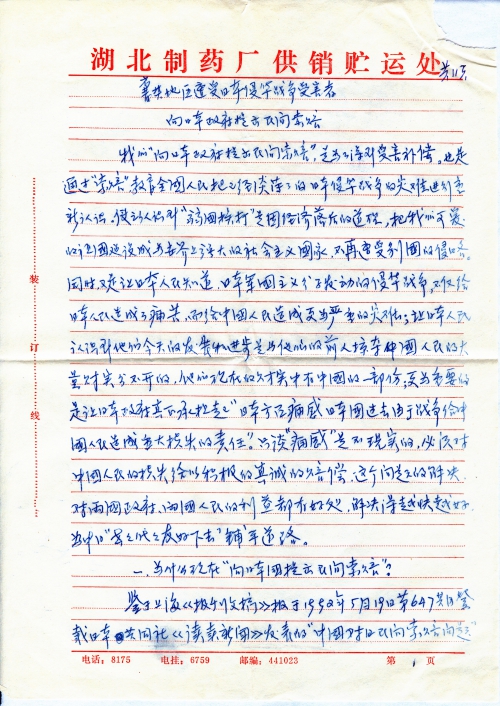 1. An Opinion Letter for Civilian Victims in Xiangfan District During Japan’s War of Aggression Against China: Let’s Unite to Claim for Civilian Compensation Against Japan