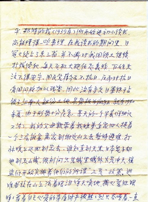 以上我简要地诉述介绍了我的一段悲惨经历,类似我家这样的受害者中国有成千上万,我们呼吁所有遭受日本侵略军残害的中国同胞都能起来控诉,掀起一个大规模的签名运动,并坚决向日本国讨还损失。