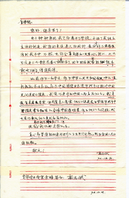 支持对日受害索赔签名:高志斌