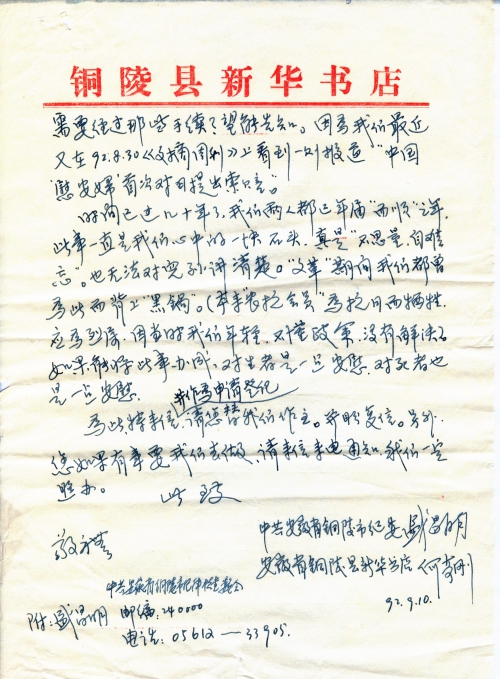 Date of letter:1992-09-10