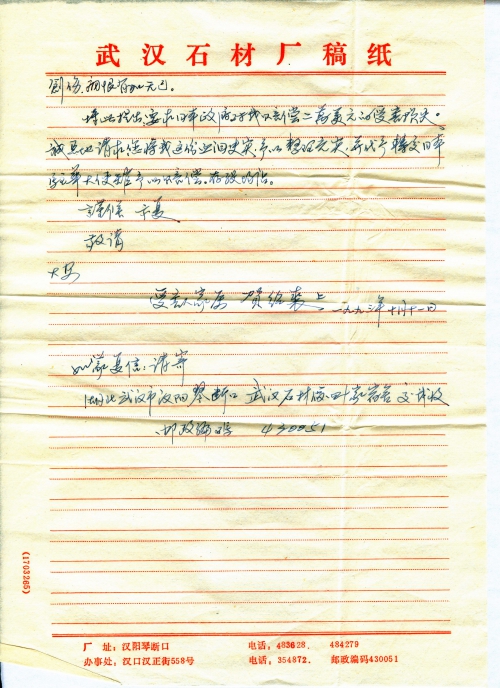本年二月六日,我也曾去缄新北县人民政府有关部门和人士,提出日本侵华战争先父被惨遭杀害,要求对日赔偿我的损失。然而,答复的是“无此精神”。并说“如果能证明某人当时在国民党军队或在我军部队纯系英勇抗日牺牲的,可由现在的民政部门给予优抚。但其他人员不能享受此种待遇”为辞。