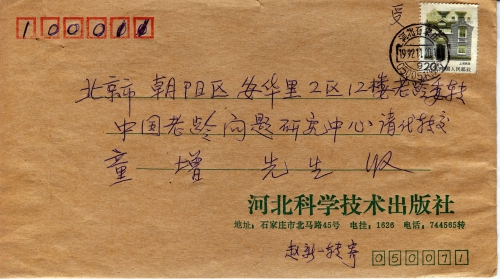 由于不了解二位先生的现在工作地址只好试投,有不详处请回信。通信址:石家庄北马路45号省出版局赵新一转。电话742501-369。邮编050071