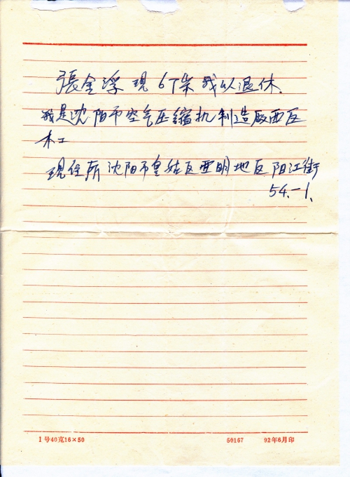 现住所沈阳市皇姑区亚明地区阳江街54-1