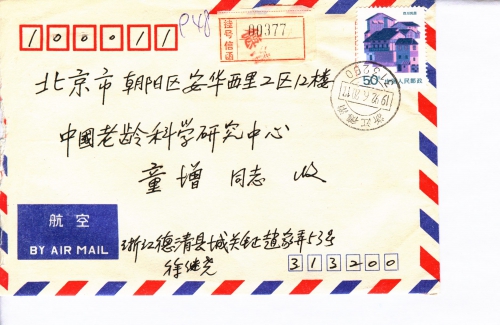 浙江省德清县邮电局退休职工 徐继尧敬启