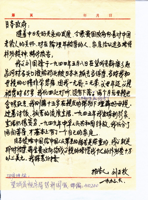 随着中日友好关系的发展,今悉贵国政府怀着对中国老龄人的关怀,对在轮涞年被虏的人,家属给以适当[赔]偿补助精神,特此报告。