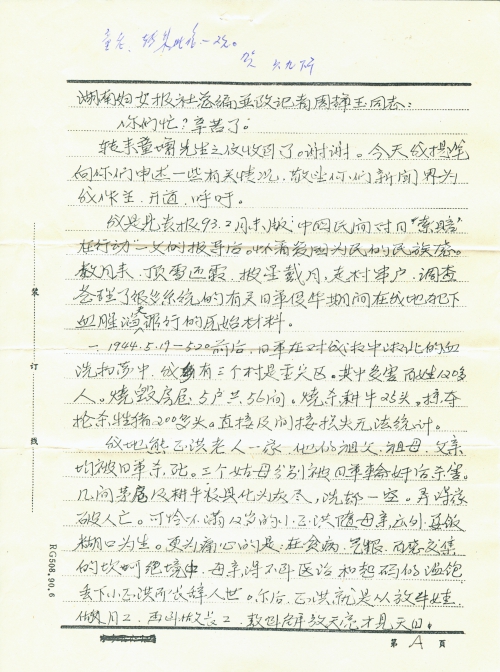 二、根据我在本乡几个村搜集整理的材料确实骇人听闻,乡亲们都强烈要求一定要彻底把日军侵华期间对我民族犯下的血腥罪行全部揭露出来,认真做好“民间索赔”这一正义合法的历史工作。在当地党认可,群众的热烈支持下,我废寝忘食,几多个风雨日夜,抓空时间<因为我还负责回龙铺地区的长沙晚报发行投递工作>,深入到村村户户,走访当事人及知情人。为了了解得更完善,全面彻底一些,我于4.4来到了毗邻的沩乌乡姓熊的受害者家做调访工作,莫名其妙的被一个穿便衣的人叫到乡政府,说我造谣行骗,将我扣押到警备室,对我进行非法搜身,审讯。没收成整理的珍贵材料及随身携带的490元现金。在早春阴雨低温的气候情况下,不给正常的食宿条件,寒衣,让我在冷板凳上挨冻。他们<陈龙、张龙等人>把我的正常调研活动指控为非法行骗,把我当作犯罪分子对待,非法拘留、审讯。对我身体、精神进行摧残、打击。使65岁身躯的我病倒了,至今仍在服药治疗中,我在沩乌乡政府非法关押33小时之久,最后,还是我乡村领导出面交涉,才使我恢复自由,非法没收了我的钱和资料,至今没有交还于我。