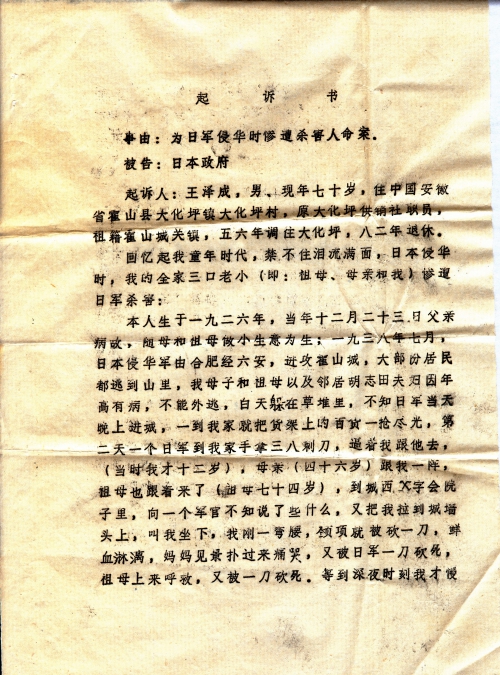 我们全家无故给日军惨杀,幸存者仅只有我一个终身残废。这笔血案怎能让我忘怀……