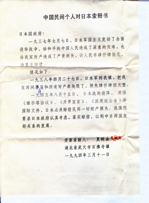 中国民间个人对日索赔书