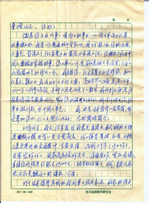 偶悉你正在从事一项伟大的事业——向日本讨还公道。此事做得好!我是一位普通的中学教师,我十分敬佩你的远见与勇气。你说出了十亿炎黄子孙要说还未说的话,你做出了亿万中国人要做而未做的事!你从事的工作是百代先祖九泉含笑、亿万人民扬眉吐气的伟大工作,我支持你!亿万炎黄子孙支持你!1800亿美元,数不小,应该得到的为何不要?高风亮节的政府免除了日本1200亿的战争赔偿,这种不应免而免了的数目,我们别无他论,但受害赔偿是要追回的!希望你把握有利时机,排除千难万险,把事业做到底,为中国人争气!我也是日本侵华的受害者,希望参加你的亿人大签名活动。今把简况简介: