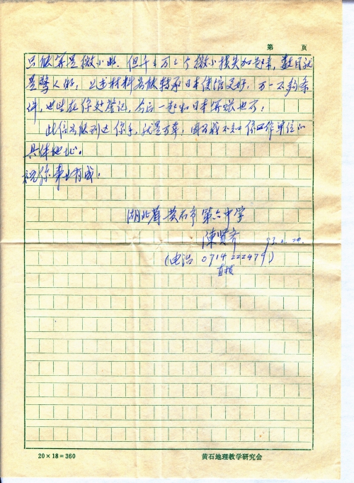 此信如能到达你手,就是万幸!因为我不知你工作单位的具体地址。