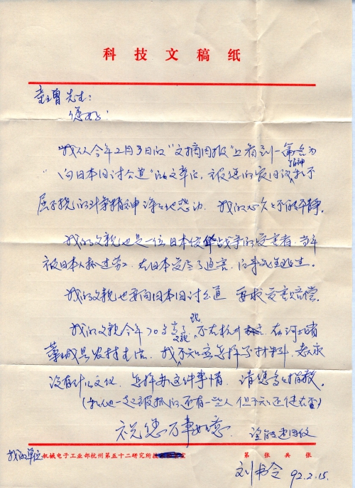 写信日期:1992-02-15