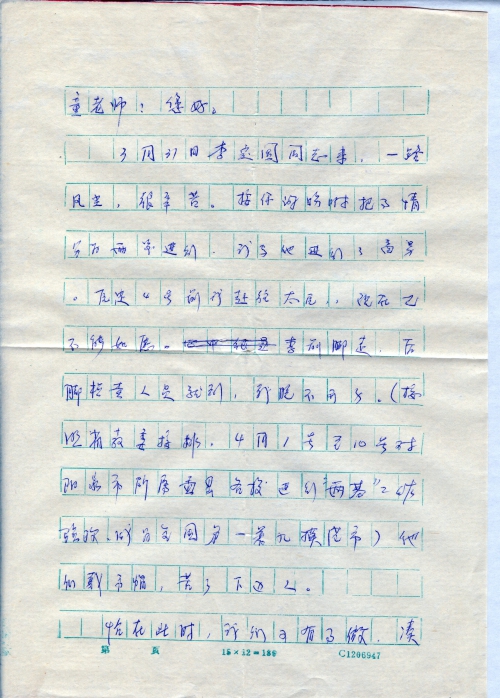 关于那个计生证明,我看你们有难处,那就不可勉强,我再想办法。“公安”和地方单位很“关心”我,不知对你们的“关心”如何。回信可否谈一下进展和预测。关于其他三十几名名单和安慰现在应采取什么办法,望能告知一二。