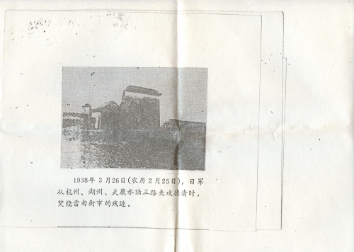 1938年3月26日(农历2月25日),日军从杭州、湖州、武康水陆三路夹攻德清时,焚烧雷甸街市的残迹。