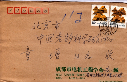 我工作的通讯地址是四川省成都市中新街21号,成都供电局科学技术协会。邮编610016