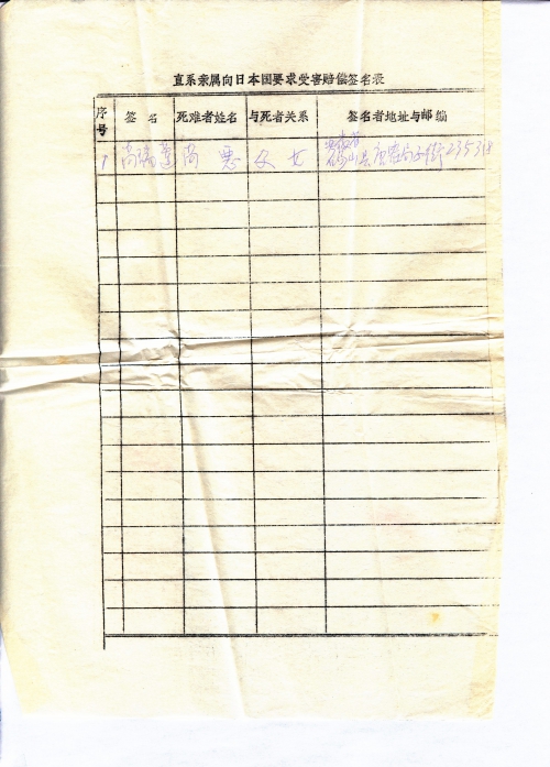细节:寄来尚瑞连、唐化成等多人要求日本对受害赔偿的签名。
