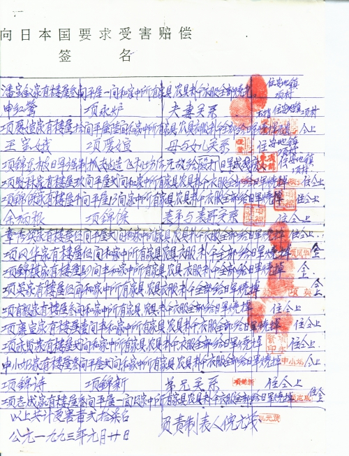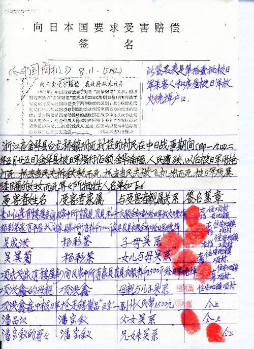 Signature to claim for compensation against Japan