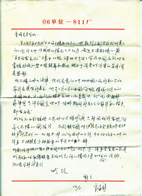 本人自今年5月就与上海文摘和北京的一些报刊分别写信打听贵人的工作所在地,但据体的情况不太知道,最近在读者文摘的一篇“历史没有忘记”文章中比较详细也介绍了你为中国民间对日索赔所做的努力,很鼓舞和感动,作为一个深受日本迫害的家属深表感谢。