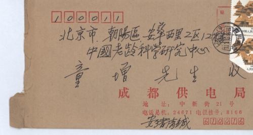 Correspondence address: 21 Zhongxin Street, Chegndu, Sichuan Province China