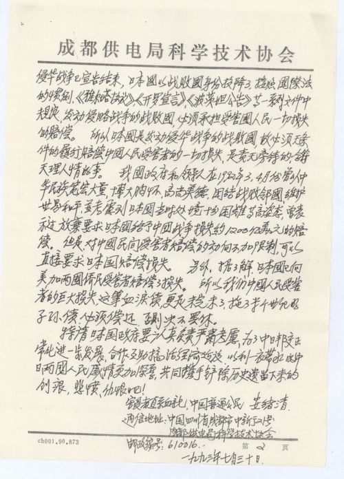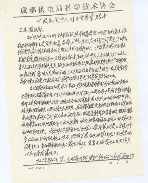 We specially request the Japanese government must assume responsibility, and give the matter serious consideration, in order to promote further development of the normalization of diplomatic relation between China and Japan, and cooperate for mutual assistance to invigorate economic construction, so as to further deepen the emotional tie between the neighboring Chinese and Japanese people, let’s join hands to together remove the wound, indignation, and hatred left behind by the history!