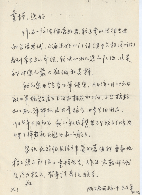 家仇、民族恨及法律爱好者使我勇敢地投入您的队伍。童增先生,作为一名教师的我会尽力投入,有事请来信联系。