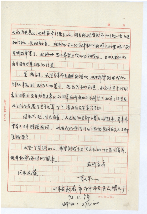 童、陈先生,我生在革命老根据地,也希望能用我的行动争取到20万人的签名,但我只不明的是,这次活动是否对国家与日本在复邦交正常化20周年有所不利呢?再说18周[岁]以上的公民[签]字是否也算呢?请两位先生复信告知。