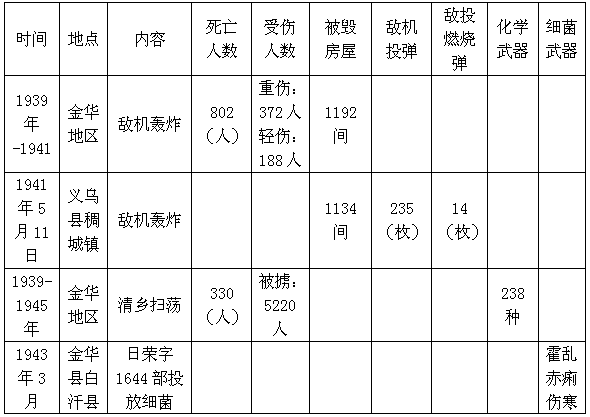 日寇侵华期间金华地区死亡伤残人数及财产损失等统计