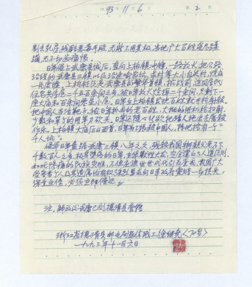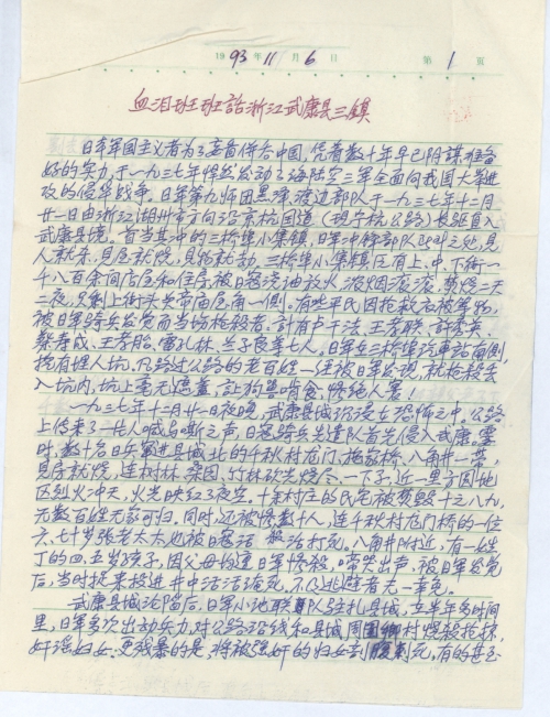 侵华日军盘踞武康三镇八年之久,残杀我国乡亲父老不下千数百人之多,极其堕落的日军,在华兽性大发,完全违反了人道原则。如此惨痛的民族灾难,不但应该世世代代引为鉴戒,我国广大受害者个人及其遗属均有权强烈要求向日本政府索赔一切损失,深重血债,必须立即偿还。