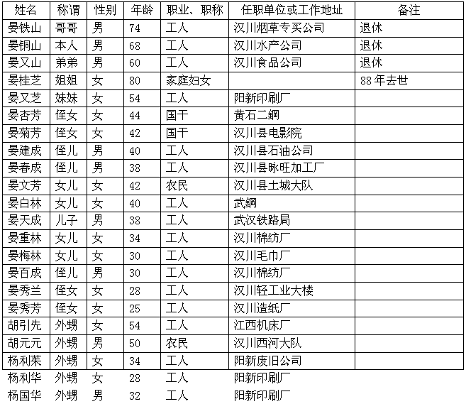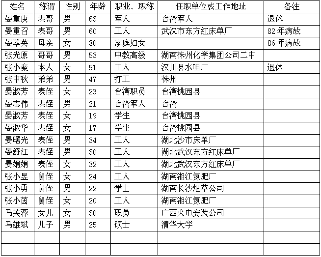 受害者亲属名单表(直系三代血亲晚辈)