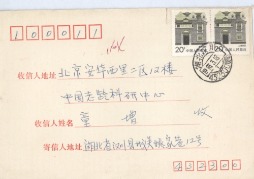邮政编码 432300 回信地址:湖北省汉川县城关镇南正街40号