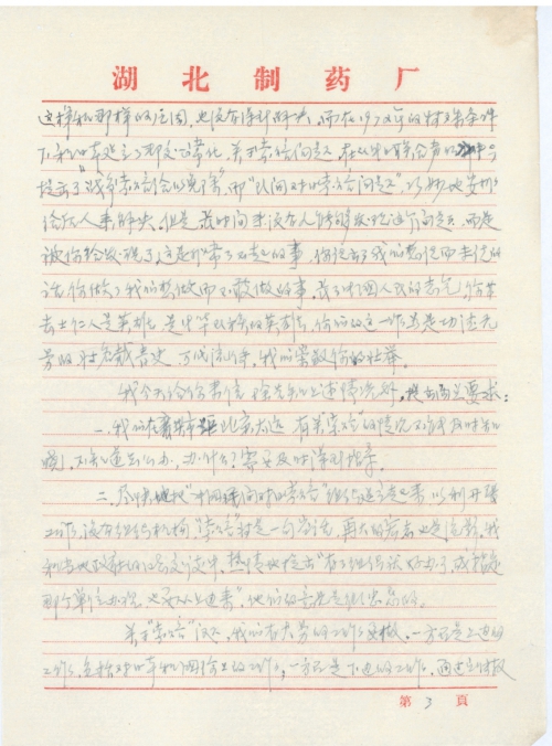 我今天给你来信,除告知上述情况外,提出两点要求: