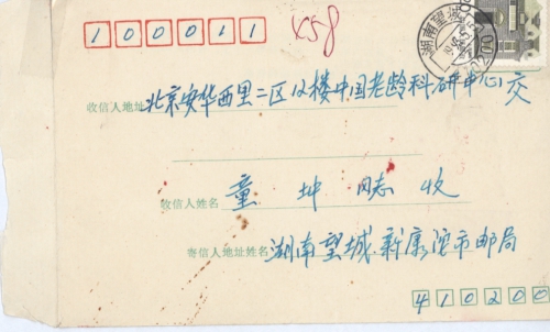 我住湖南望城县新康乡沱市村梨家囲人(祖父肖菊生)孙千国提笔: