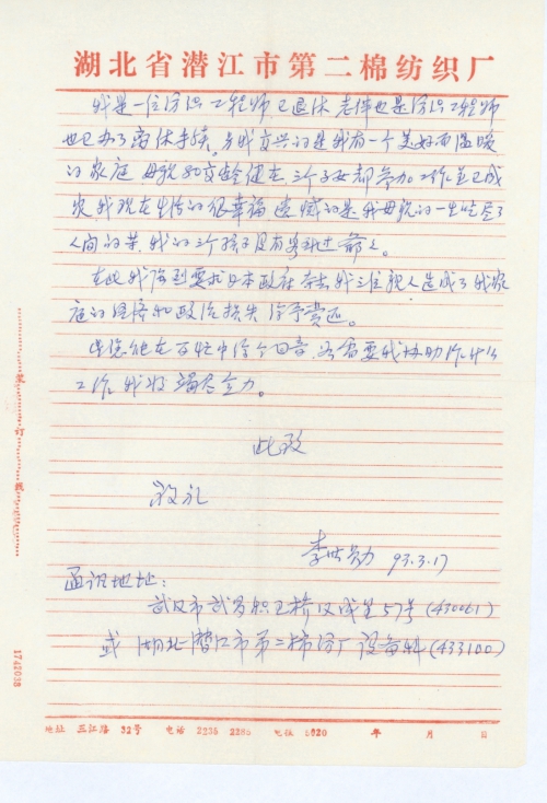 写信日期:1993-03-17