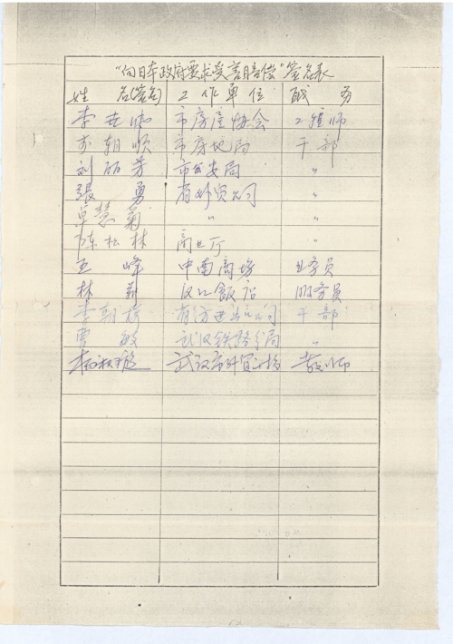 补寄上签名表几页,人数不多,因有一些人尚不明事情原委,心存疑虑,不愿签名。有些人认为没有政府支持,事恐难成。故征集签名人数有限。