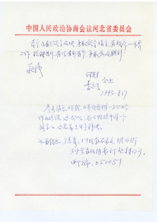 如有消息,请寄:河北省石家庄维明街34号省政协老干部处转即可。